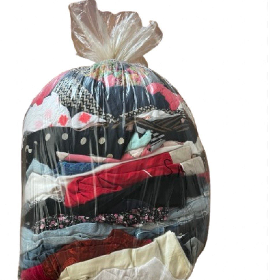 Sudėtis: moteriški drabužiai apie 80%, vyriški drabužiai, vaikiški drabužiai, aksesuarai, tekstilė ir kt . Kiekvienas maišas skirtingas, todėl procentuotė gali skirtis.